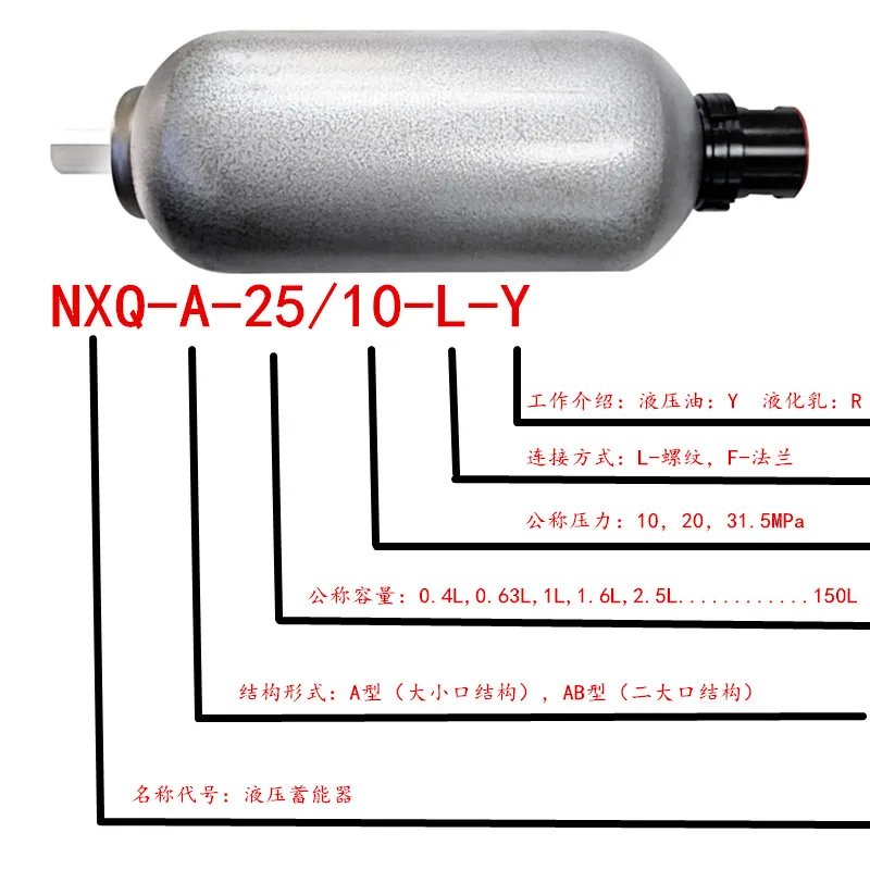 Bladder Type Hydraulic Tianyuan Accumulator 0.63/1.6/2.5/4/6.3/10/16/20/25/40/80-L NXQ-A-40/31.5-F-Y XQ-A-0.63/20-L-Y