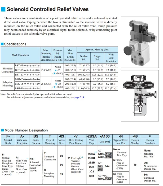 BSG Series BSG-10 Hydraulic High Pressure Solenoid Controlled Relief Valve