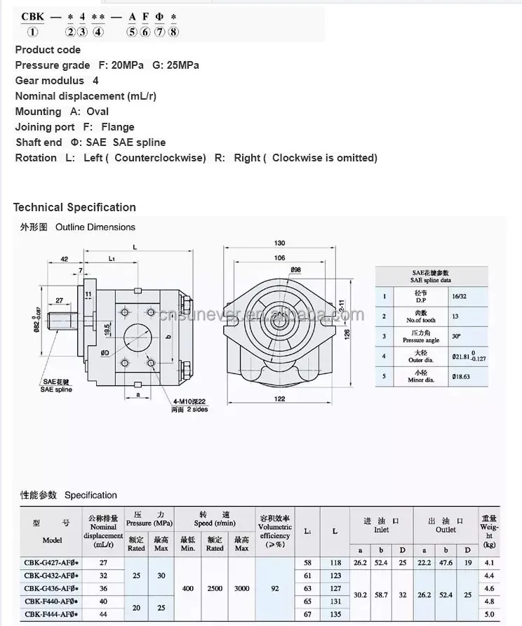 CBK Series CBK1004 CBK1006 CBK1008 CBK1010 CBK1012 CBK1016 CBK1020 CBK1025 Forklift Hydraulic Gear Pump CBK1012-B21R