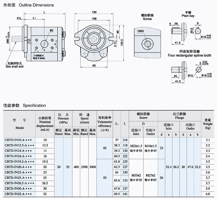 CBTD Series single Hydraulic Power Gear Pump Forklift High Pressure Oil Pump CBTD-F416 CBTD-F419.2 CBTD-F420 CBTD-F430 CBTD-F432-ALH4L