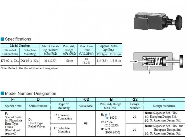 DG-02-B-22 DG-01-22 DT-02-C-22 DG-02-H-22 DT Hydraulic Electromagnetic Overflow Valve