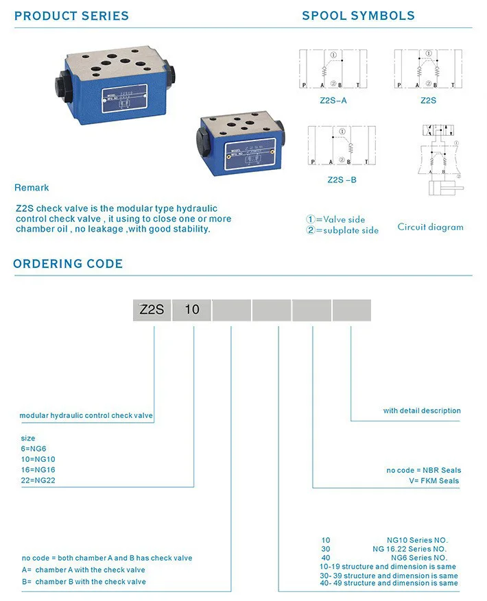Double Throttle Check Valve Z2S Z2S6 Z2S6-40B Z2S6-1-6X Liquid controlled one-way valve Z2S10 Z2S16