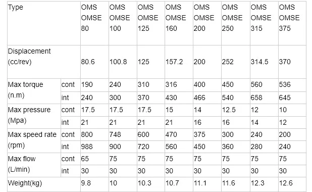 OMS OMSS OMSW 250 315 High Torque Hydraulic Orbital Motor 250cc 315cc