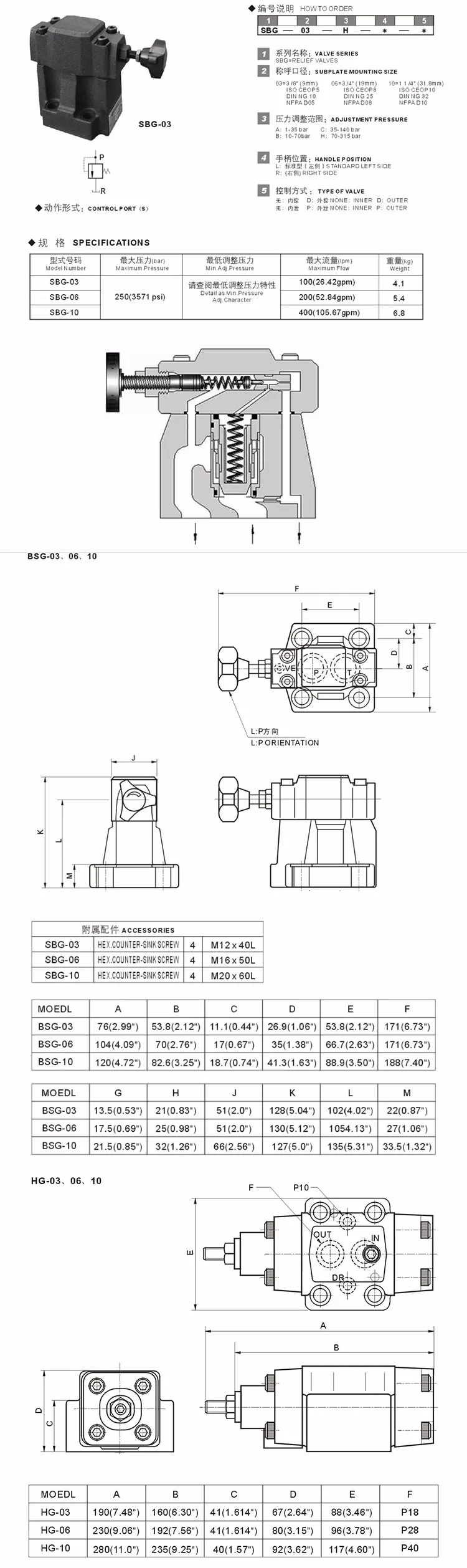 SBG-03-B SBG-03-C solenoid valve SBG-03-H SBG-06-B SBG-06-C SBG-06-H SBG-10-B SBG-10-C hydraulic pilot relief valve