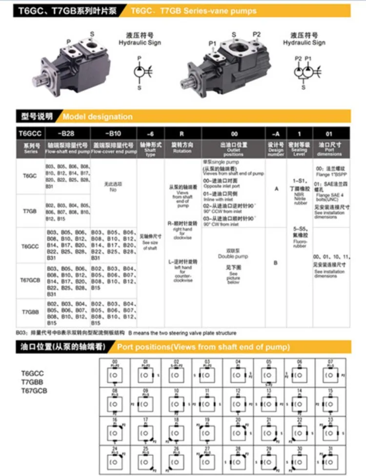 T7 T6 T7B/T7D/T7E/T7BB/T7DB/T7ED/T7EE/T6C/T6D/T6E/T6CM/T6DM/T6EM/T6CP/T6DP/T6EP T7BS-B04-1R00-A1M0 Hydraulic Vane Pump